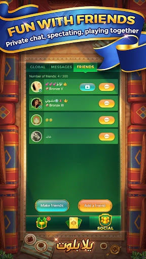 Classic online Baloot mobile game with real mobile game atmosphere. Real-time voice in the mobile game makes the tournament more interesting.